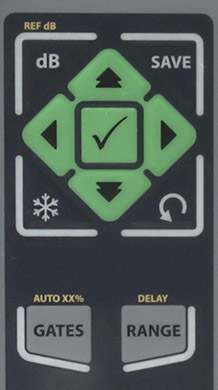 EPOCH 650型儀器的瀏覽鍵區(qū)是EPOCH探傷儀的標(biāo)志性特色。瀏覽鍵區(qū)的向上、向下箭頭鍵用于參數(shù)的粗略調(diào)節(jié),向左和向右箭頭鍵用于參數(shù)的細(xì)微調(diào)節(jié)。瀏覽鍵區(qū)還包含其它幾個功能及常用參數(shù),如:增益、保存、確定鍵及退出鍵。瀏覽鍵區(qū)配置的設(shè)計符合IP67的要求。
