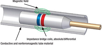 渦流檢測以一種非接觸方式對非鐵磁性管件進(jìn)行檢測。這種技術(shù)適用于探測和定量非鐵性金屬材料中的腐蝕、侵蝕、磨損、點(diǎn)蝕、折流板切口、壁厚損失以及裂縫等不連續(xù)性缺陷。