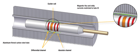 近場檢測(NFT)技術(shù)是一種專為翅扇式碳鋼管件檢測量身定做的快速、經(jīng)濟(jì)的解決方案。這種新技術(shù)依靠一種簡單的驅(qū)動器-拾波器渦流探頭設(shè)計,使信號分析簡便易行。