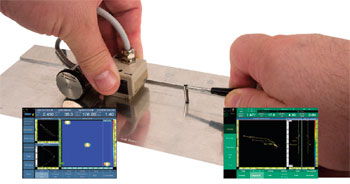 用于腐蝕檢測(cè)的發(fā)射-接收探頭可以探到鋁材料中6毫米(0.25英寸)的深度。